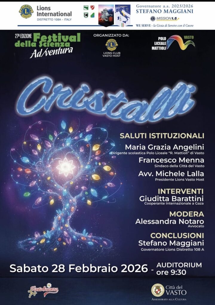 Si è svolto questa mattina a Vasto, presso il Liceo Scientifico Mattioli, il Convegno Dibattito dal titolo “Cristalli” organizzato dal Lions Club Vasto Host e dedicato al tema del Diritto Internazionale e della Cooperazione Internazionale analizzato da più voci autorevoli e da più punti di vista, compresi quello del Lions, rappresentato nel suo intervento dal Governatore, Stefano Maggiani.