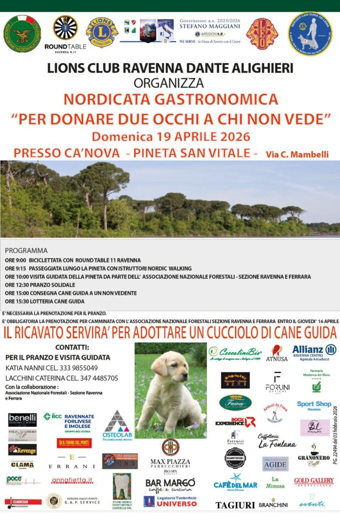 Domenica 19 aprile nella Pineta San Vitale alla Cà Nova, si terrà la tradizionale festa “Nordicata gastronomica”  organizzata dal Lions Club Ravenna Dante Alighieri , Presidente Giorgio Palazzi Rossi.