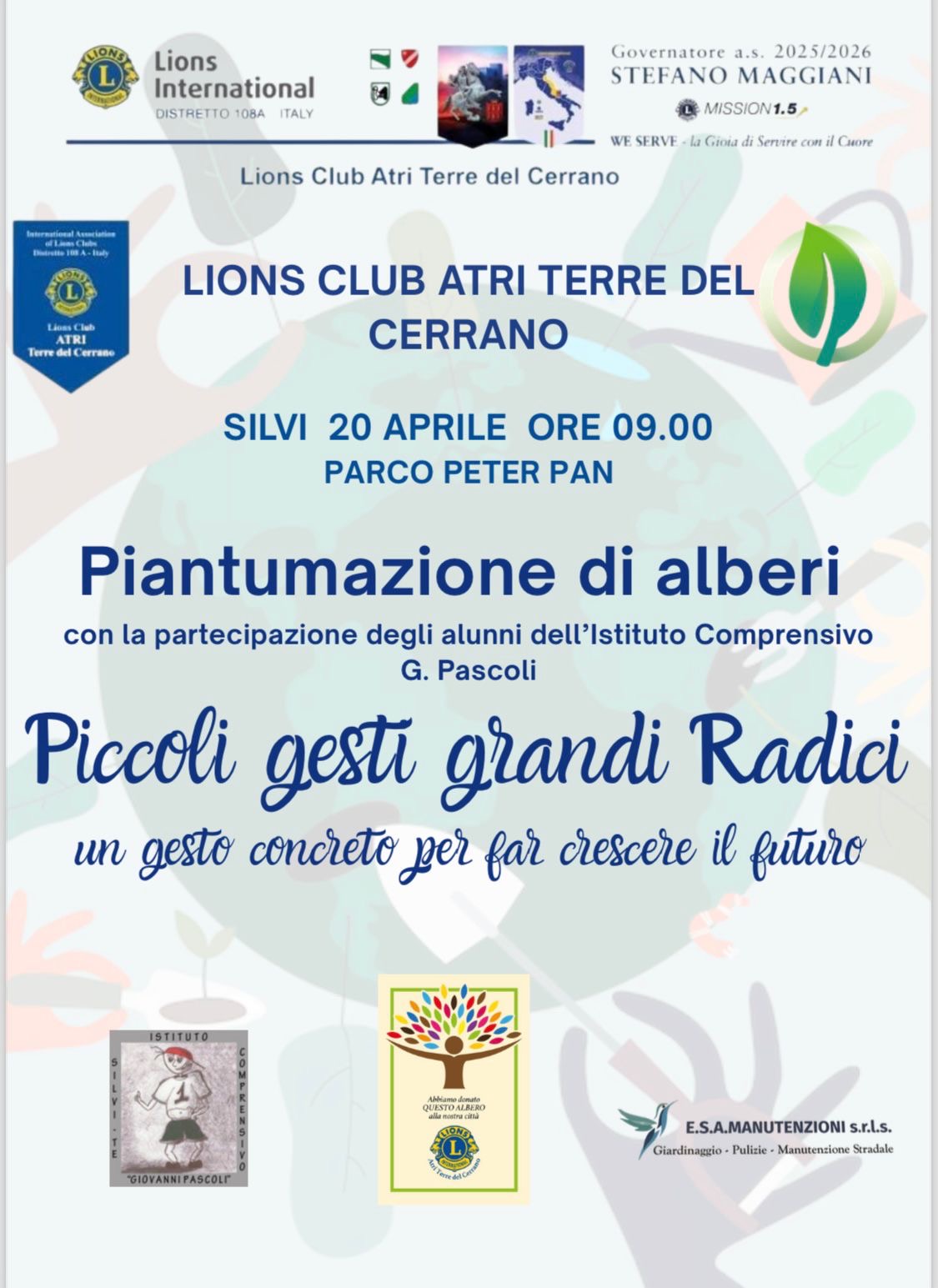 Lunedì 20 e mercoledì 22 aprile piantumazione di nuovi alberi nei comuni di Pineto, Silvi ed Atri.