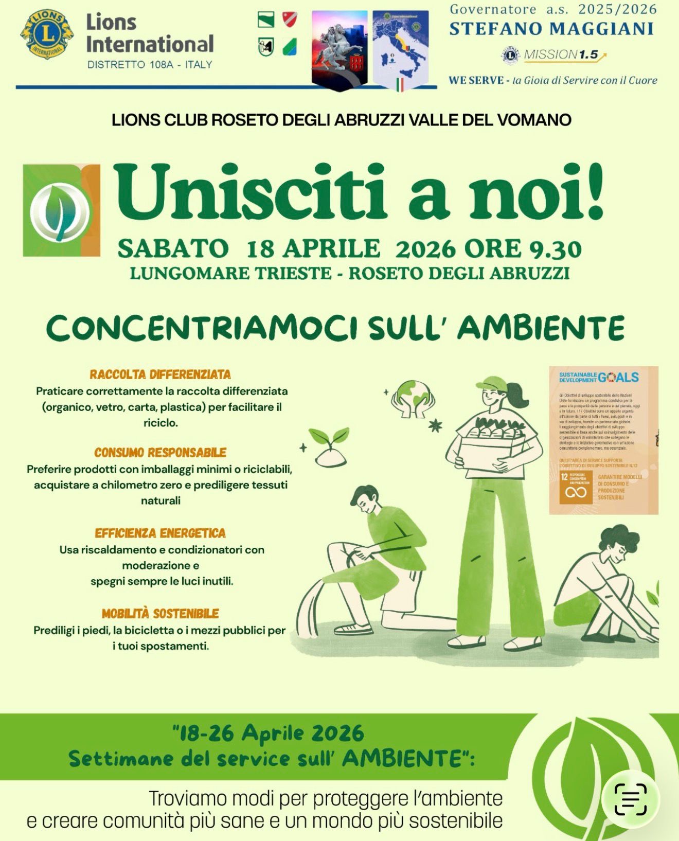 Concentriamoci sull’ambiente LC Roseto degli Abruzzi Valle del Vomano, 18 aprile 2026 da Responsabile sito | 14 Apr, 2026 | Distretto 108A, Notizie dei Clubs | 0 commenti
