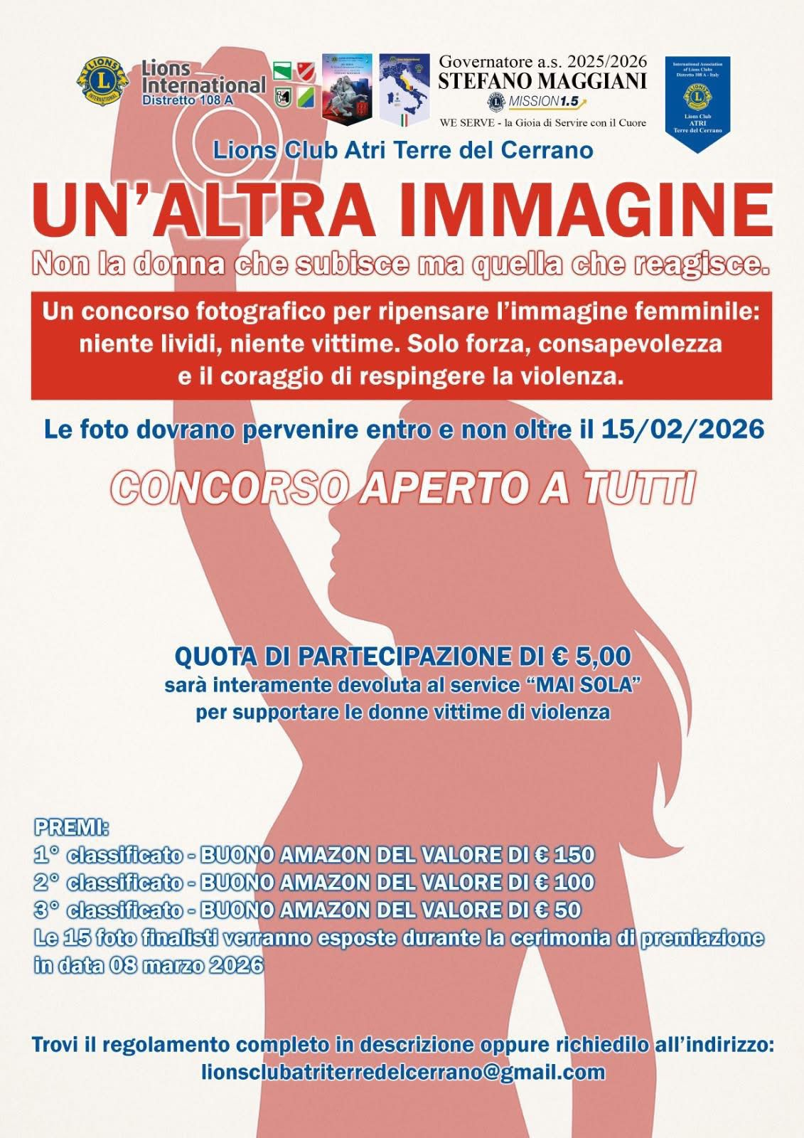 I premi verranno consegnati durante la cerimonia conclusiva che si terrà in data 08 marzo 2026 presso l’Auditorium Sant’Agostino di Atri (TE) Corso Elio Adriano 41-57 - DIRITTI D’AUTORE E UTILIZZO DELLE IMMAGINI