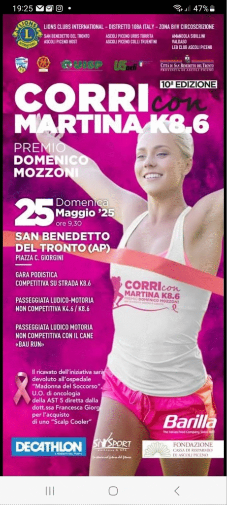 Corri con Martina K8.6 – LC San Benedetto del Tronto, 25 maggio 2025 da Felice Samorè | 24 Mag, 2025 | Distretto 108A, Notizie dei Clubs | 0 commenti