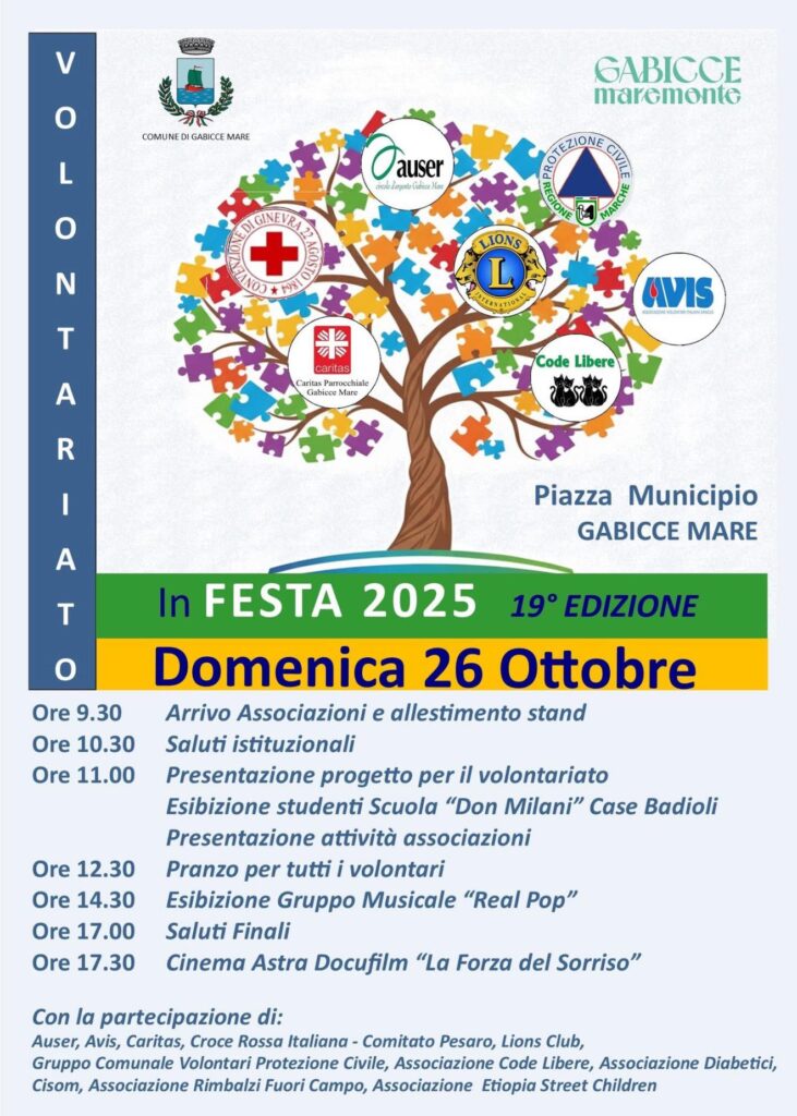 Il 26 ottobre, anche il Lions Club Gabicce Mare parteciperà con suoi Soci ed un banchetto alla 19^ Festa del Volontariato, una manifestazione, organizzata dal Comune di Gabicce Mare, che mette in evidenza le specifiche attività svolte dalle Associazioni che continuamente operano per i cittadini. Un invito a partecipare numerosi per rendervi conto di quanto sia molto importante l’associazionismo solidale.
