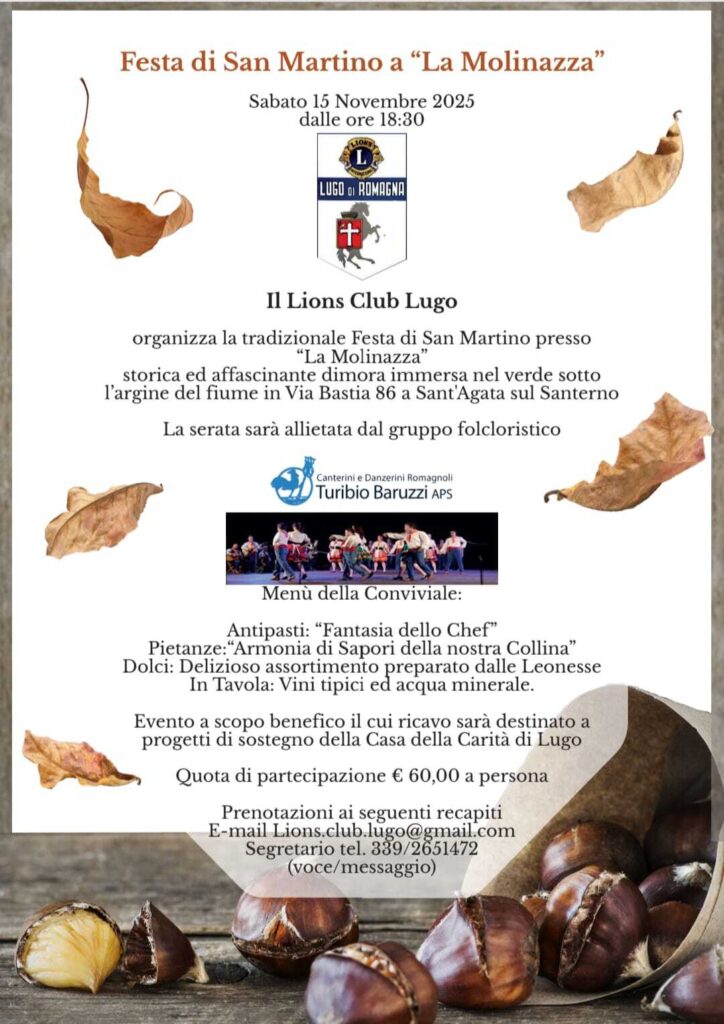 Fiera di San Martino – LC Lugo, 15 novembre 2025 da Responsabile sito | 4 Nov, 2025 | Distretto 108A, Notizie dei Clubs | 0 commenti