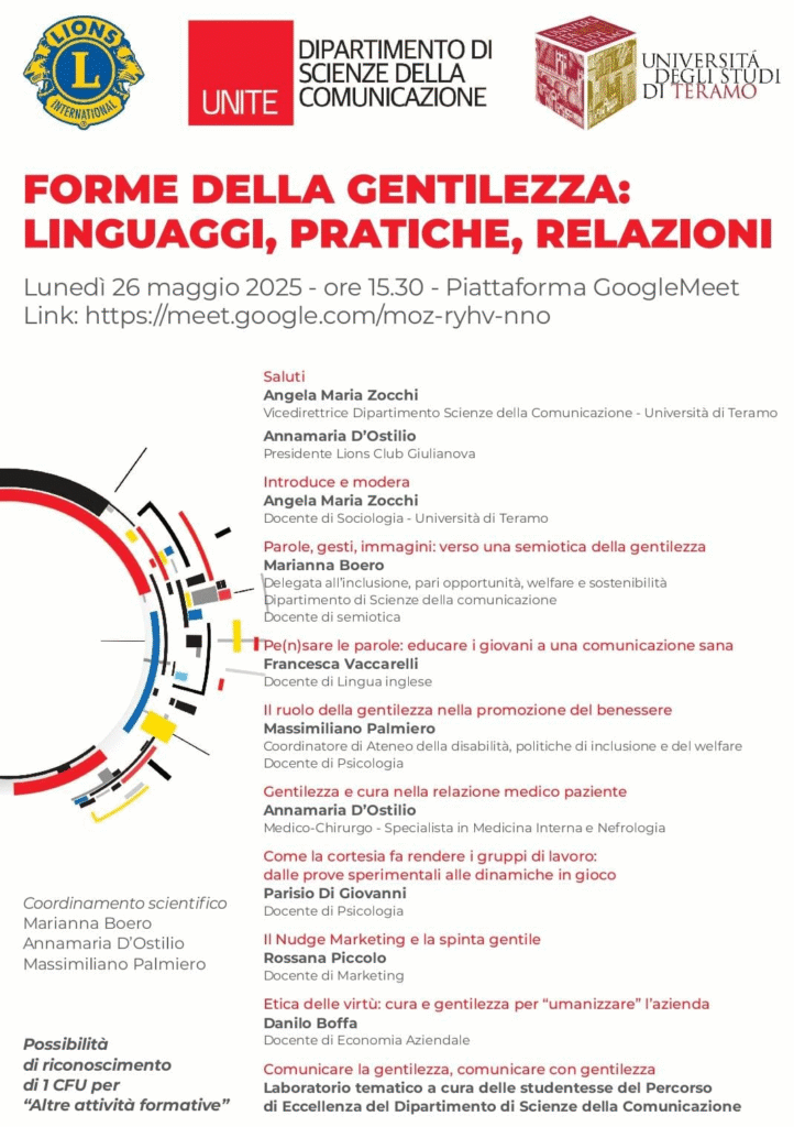 Forme della Gentilezza: linguaggi, pratiche, relazioni – LC Giulianova, 26 maggio 2025 da Felice Samorè | 13 Mag, 2025 | Distretto 108A, Notizie dei Clubs | 0 commenti