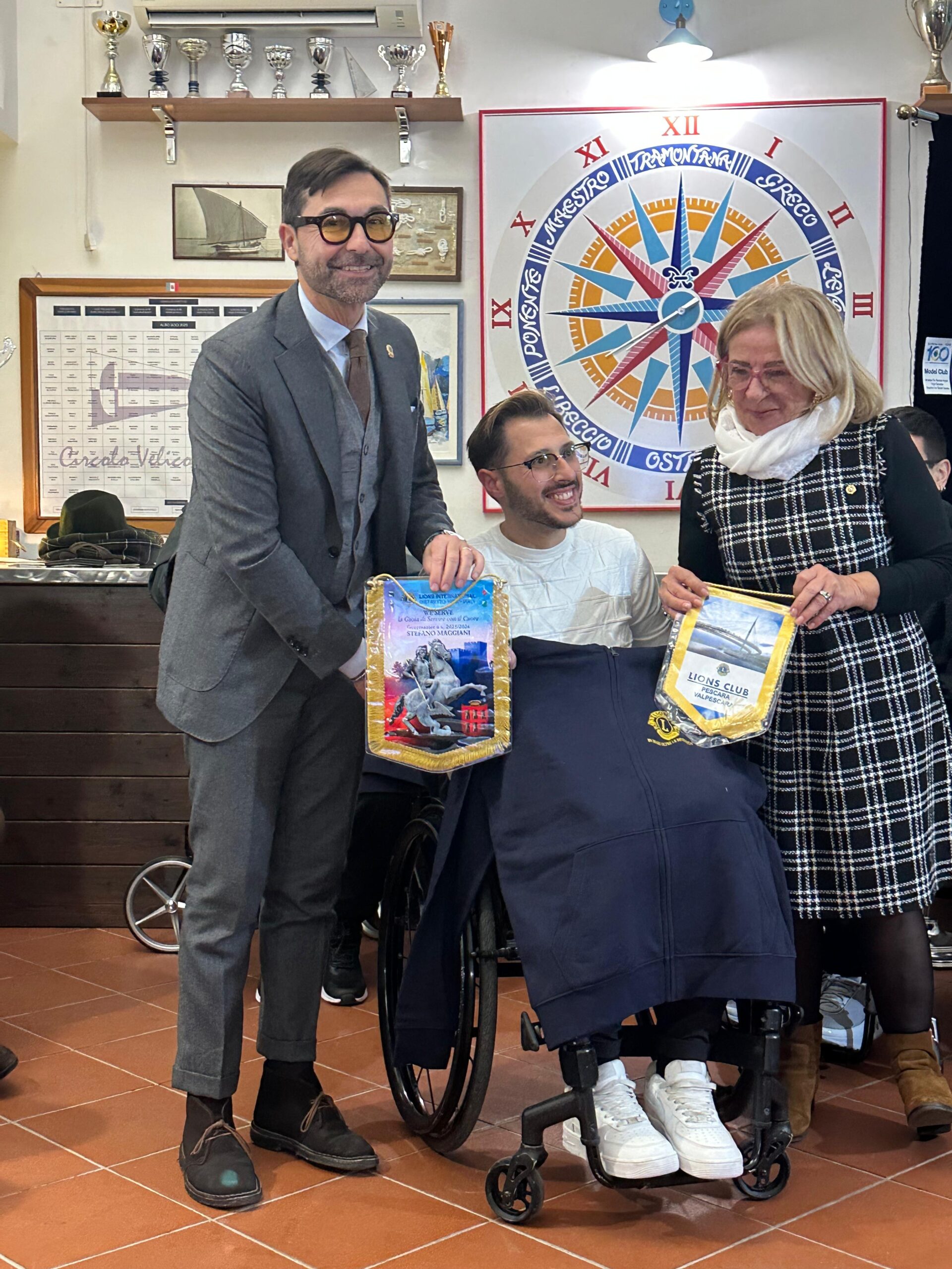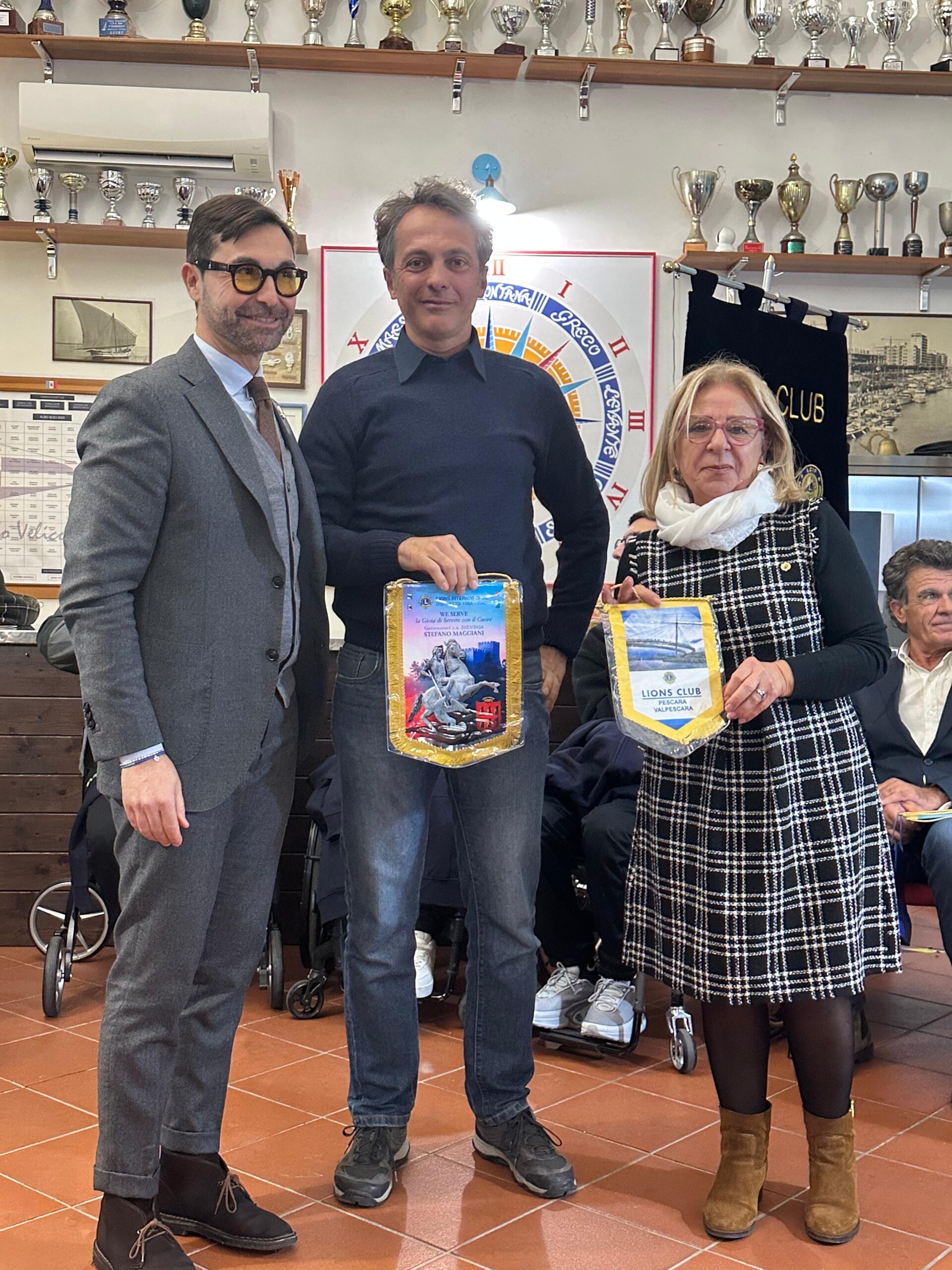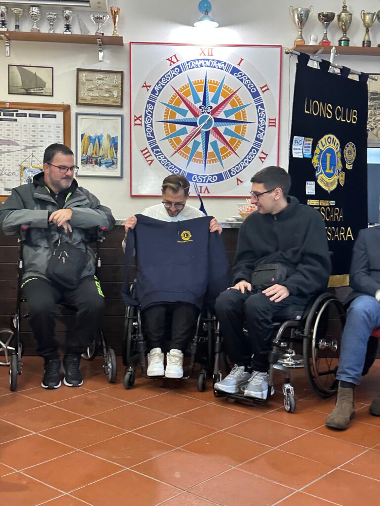 Presenti tutti i partner sottoscrittori dell’accordo con il Lions Club Pescara ValPescara per il service a favore della disabilità : il Vice Presidente del porto Turistico Marina di Pescara Camillo Volpe, il Presidente della Scuffia Marco Bovani , il Past Presidente della lega Navale di Pescara Antonino Lamante, in rappresentanza del Commissario Avv Giovanni Di Carlo,