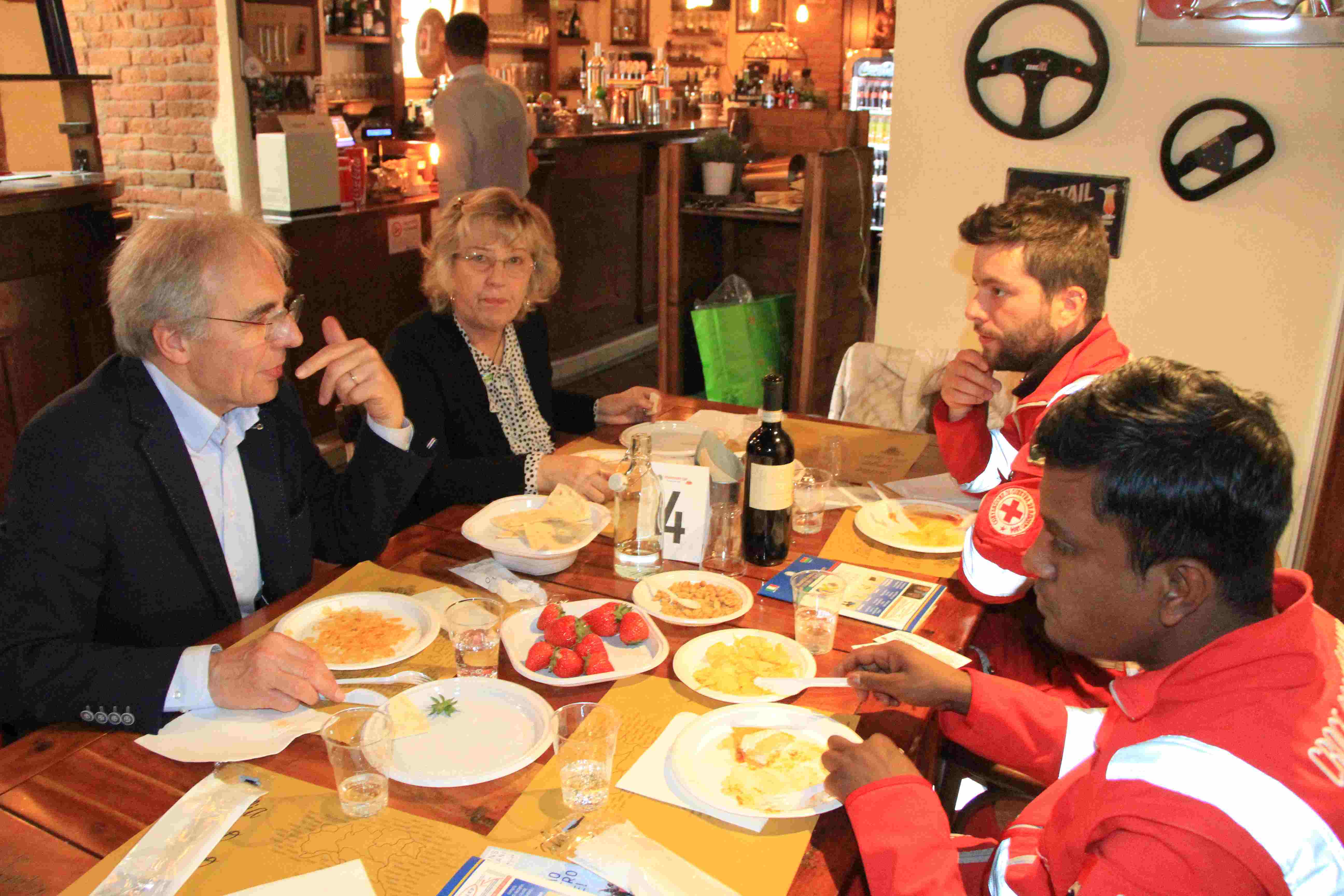 Lo Strawberry Day alla sua terza edizione ha visto l’entusiastica partecipazione di oltre trecento persone, tra Lions ed invitati. Le avverse condizioni climatiche prospettate e confermate anche negli ultimi giorni avevano indotto gli organizzato dell’evento a decidere di farla all’interno del locale Casa della Birra. Le prenotazioni di conseguenza hanno saturato in pochi giorni tutti i posti disponibili ed il risultato di una ampia raccolta fondi per finanziare gli interventi a Wolisso in Etiopia e a Gouda in Burkina Faso è stato raggiunto, oltre ogni aspettativa. Ai fondi raccolti della gestione dell’evento gastronomico e conviviale e della importante Lotteria, si sono aggiunti quelli che generosamente hanno voluto destinare ai giovani africani dei due villaggi alcune aziende romagnole. L’organizzazione dello Strawberry ringrazia sentitamente, anche a nome del Villaggio di Wolisso e del Villaggio di Gouda, Apofruit, Agrintesa, Deco, Intustrie, Babbi, Cesena Fiera, Creditpartner, Madel e Terremerse che hanno contribuito direttamente alla raccolta fondi. Altre importanti collaborazioni sono state quelle realizzate con la fornitura generosa di prodotti e servizi che hanno visto partecipare Caviro, Golfera, Orva. Le fragole hanno caratterizzato l’ambiente con il loro profumo ed il loro colore. Hanno abbondato sulle tavole, e costituito un dolce intermezzo tra le portate e le occasioni di colloquio tra gli oltre trecento partecipanti. Un ringraziamento ad Agrintesa ed Apofruit per le buonissime fragole! Caviro ha fornito ottimo vino presentato dalla brava e simpatica Nicole Poggi. Strawberry Day ringrazia tutti ed augura i migliori successi a tutte le aziende che hanno contribuito al Service dei Lions per i Villaggi africani in cui i ragazzi studiano regolarmente, sono seguiti dal punto di vista sanitario, vengono formati al lavoro e vivono in un contesto socialmente ricco di solidarietà e di sicurezza. Il Governatore Maurizio Berlati ha aperto la festa esprimendo la propria soddisfazione per la buona riuscita del service ed ha descritto altre importanti iniziative dei Lions coerenti con il motto We Serve, “dove c’è un bisogno, lì c’è un Lions”. Il Governatore Maurizio Berlati e la responsabile al GST Amina Murani Mattozzi hanno ringraziato tutti i volontari ed il coordinatore dell’evento Mario Boccaccini, Erano presenti allo Strawberry Day il Governatore Incoming Tommaso Dragani, la prima vice governatrice Francesca Romana Vagnoni ed il secondo Vice Governatore Franco Saporetti, oltre a decine di officer che seguono le molte iniziative sionistiche e l’organizzazione dei club.