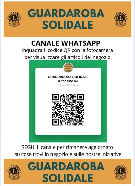 Sbirciate comodamente da casa dal cellulare il canale whatsapp per vedere cosa trovate nel temporary shop da ora chiamato GUARDAROBASOLIDALE Vi basta cliccare questo link https://whatsapp.com/channel/0029Vb6jb2z4SpkMC2Pp8y0Y INVITA un amic* a inquadrare il QR CODE qua sotto Vi aspettiamo sabato ad Alfonsine in via Terzo Lori